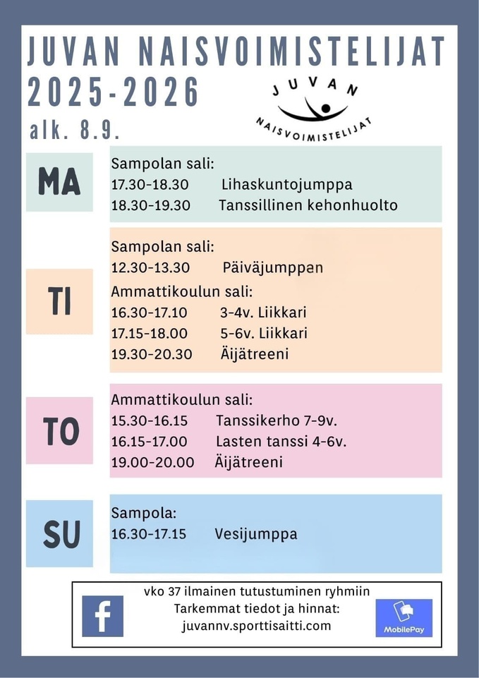 Ensimmäinen jumppaviikko (vko 37) ilmaista tutustumista ryhmiin.